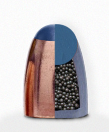 The projectile in the cartridge is of a lighter weight than more conventional types of cartridges and so the projectiles exit the bore at significantly higher muzzle velocities. The current bullet has a stable core of compressed lead shot. On impact, the bullet fractures along manufactured stress lines in the jacket—imparting all the bullet's energy very quickly rather than over-penetrating a target or ricocheting on a miss. The light weight and fragility of the projectile make it unsuitable for long-range firing or against protected targets.