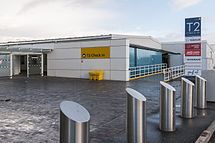 The East Pier, constructed in the mid-1970s, was originally used for international flights but in recent years has been re-developed for use by low-cost airlines. None of the stands on this pier are equipped with airbridges. The main users of this pier are Ryanair, easyJet, Jet2 and Loganair. In 2015 a £3,000,000 extension was added to the pier, creating space for 750,000 extra passengers a year. This pier has stands 1- 12.[11]