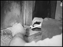 The first in-socket artificial eyes were made of gold with colored enamel, later evolving into the use of glass (thus the name "glass eye") by the Venetians in the later part of the sixteenth century. These were crude, uncomfortable, and fragile and the production methodology remained known only to Venetians until the end of the 18th century, when Parisians took over as the center for artificial eye-making. But the center shifted again, this time to Germany because of their superior glass blowing techniques. Shortly following the introduction of the art of glass eye-making to the United States, German goods became unavailable because of World War II. As a result, the US instead made artificial eyes from acrylic plastic.[3]