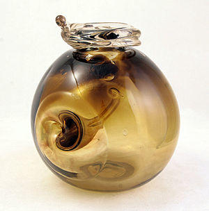 The early glass movement (studio glass) in Australia was spurred on by a visit to Australia by American artist Bill Boysen, who toured the country in the early seventies with a mobile studio. Boysen traveled to Australia in 1974, where he promoted glass artistry by presenting a "revolutionary demonstration of glass blowing"[5] to a gathering of around 250 attendees. Boysen's mobile studio "successfully toured eight eastern states’ venues in ’74, thus greatly enhancing the credibility of hand crafted glass."[6] Boysen's visit is credited with helping "inspire a generation of [Australian] artists to work with glass and eventually led to the creation of the national glass art collection"[5] in Wagga Wagga, Australia. This important collection includes over 450 works of art and is "the most comprehensive public collection of Australian studio glass anywhere."[5] Since that time Australian glass has gained worldwide recognition with Adelaide in South Australia, hosting the International Glass Art Society Conference in 2005 on only its third occasion outside of the U.S. The Ranamok Glass Prize, presented every year from 1994 to 2014, promotes contemporary glass artists living in Australia and New Zealand.[7]