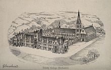 Trinity College Glenalmond was founded as an independent school by the future Prime Minister, William Gladstone and James Hope-Scott.[1] The land for the school was given by George Patton, Lord Glenalmond who for the rest of his life, in company with his wife Margaret, took a keen interest in its development and success.[2] It was established to provide teaching for young men destined for the ministry of the Scottish Episcopal Church and where young men could be brought up in the faith of that Church.[1] It was originally known as The Scottish Episcopal College of the Holy and Undivided Trinity of Glenalmond.[2] The school opened its doors on 4 May 1847 to fourteen boys (though one boy, Lord Kerr, later Marquess of Lothian and Secretary for Scotland, arrived a day early).[1] The first Warden (headmaster) was Charles Wordsworth.[1]