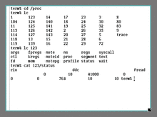The file system approach allows Plan 9 processes to be managed with simple file management tools such as ls and cat; however, the processes cannot be copied and moved as files.[4]