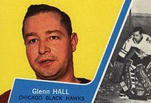 Glenn Henry Hall (born October 3, 1931) is a Canadian former professional ice hockey goaltender. During his National Hockey League career with the Detroit Red Wings, Chicago Black Hawks, and St. Louis Blues, Hall seldom missed a game and was a consistent performer, winning the Vezina Trophy, which at the time was awarded to the goaltender on the team allowing the fewest goals against (a distinction that now results in being awarded the William M. Jennings Trophy), three times, being voted the First Team All-Star goaltender a record seven times, and winning the Calder Memorial Trophy as best rookie. Nicknamed "Mr. Goalie", he was the first goaltender to develop and make effective use of the butterfly style of goalkeeping.[1] In 2017 Hall was named one of the 100 Greatest NHL Players in history.[2][3] He is the grandfather of Grant Stevenson.