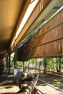 Murcutt was born in London to Australian parents. He spent the first five years of his life in the Morobe Province of Papua New Guinea, where he first encountered a simple, vernacular architecture. After moving to Sydney with his parents in 1941, he was educated at Manly Boys' High School and studied architecture at the Sydney Technical College, from which he graduated in 1961.[2] Murcutt's early work experience was with various architects, such as Neville Gruzman, Ken Woolley, Sydney Ancher and Bryce Mortlock, which exposed him to their style of organic architecture focussing on relationships to nature. By 1969, Murcutt established his own practice in the Sydney suburb of Mosman.[2][3]