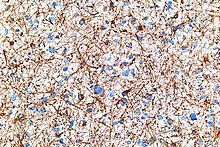 - ^ a b Jacque CM, Vinner C, Kujas M, Raoul M, Racadot J, Baumann NA (January 1978). "Determination of glial fibrillary acidic protein (GFAP) in human brain tumors". Journal of the Neurological Sciences. 35 (1): 147–55. doi:10.1016/0022-510x(78)90107-7. PMID 624958. S2CID 10224197.