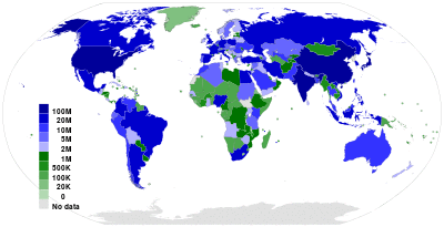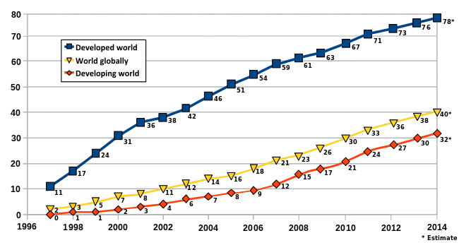 - ^ "Individuals using the Internet 2005 to 2014", Key ICT indicators for developed and developing countries and the world (totals and penetration rates), International Telecommunication Union (ITU). Retrieve 25 May 2015.