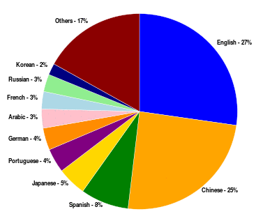 ![]() Content languages for websites[23] | ![]() Percentage of Internet users by language[24] |