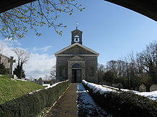 The present parish church of St Mary the Virgin, built by Richard Trevor to a design by Sir Thomas Robinson, was dedicated in 1765.[5] The old parish church which it replaced appears to have been similar to many churches in the district, having nave, north aisle, and chancel, with south porch.[6] The new church, in Palladian style, was faced in Sussex flints and lightened with windows of coloured lozenges of Flemish glass; these were taken out in the 19th century, but some of the glass remains in windows in Glynde Place.[4]