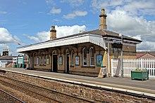 A vending machine and disabled access toilet is located in the ticket hall.[6] Train running information is offered via CIS displays, timetable posters and automatic announcements. Level access to both platforms is via the manned barrier level crossing at the north end which is controlled from the adjacent signal box.[7]