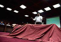 - Levitation of a person under a blanket: The trick is done by lying on the floor covered by a blanket and slowly raising oneself using two hockey sticks.[16]