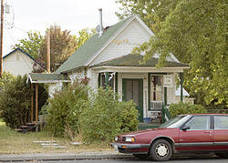 In 1859 the town was given its name by the early homesteader John Golden, a Pennsylvania-born farmer who settled with his wife from Oregon. His home at Columbus Street and Collins Street remains standing in downtown Goldendale. The town was designated as the county seat of Klickitat County in 1878. Goldendale was officially incorporated on November 14, 1879. Much of the young town, including the county courthouse, was destroyed in a devastating fire on May 13, 1888.[7]