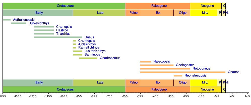 - Genus †Parachanos Arambourg & Schneegans 1935 - Early Cretaceous Chanid