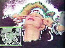 George Plimpton hosted the show, which combined live and taped segments with TV graphics designed by Paik. John Cage, in New York, produced music by stroking the needles of dried cactus plants with a feather,[1] accompanied by video images from Paris. Charlotte Moorman recreated Paik's TV Cello. Laurie Anderson and Peter Gabriel performed a new composition, "Excellent Birds," also known as "This Is the Picture (Excellent Birds)." The broadcast also featured the television premiere of the video Act III, with music by Philip Glass.[2] The Thompson Twins performed their song "Hold Me Now."[3] Oingo Boingo played its song "Wake Up (It's 1984)" to an audience that presumably had recently woken up on the first day of 1984. Others contributing to the project included poets Allen Ginsberg and Peter Orlovsky, choreographer Merce Cunningham, and artist Joseph Beuys.