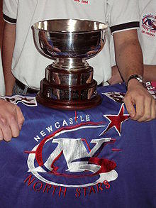 The cup was partially restored in 2004 by the champions at the time, the Newcastle North Stars where the pewter cup was polished and the original wooden single tier mount was replaced with a 2 tier wooden mount.