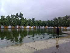 The Gorakhnath temple is seen as the main Nath establishment, among other Nath monasteries such Fatehpur Sikri and Asthal Bohar. The temple grounds reach across 52 acres of land in the heart of Gorakhpur. Within the temple are various hallways and rooms celebrating a variety of deities. First is Gorakhnath's personal chamber samadhi. The room once housed a statue of him but has since been replaced with footprints.[3] It also holds his prayer seat where he held his seated pose once he returned from his travels. Leading out of the chamber is a gallery of statues including Siva, Ganesh, Kali and Bhairav.[3] Another room contains the nine Naths found in statue form accompanied with other statues. When exiting the gallery surrounding Gorakhnath temple, there are other rooms and portraits allocated for other Hindu deities. Not only is the seat of Gorakhnath a defining feature of the temple, the eternal flame (Divya Joyti) is also held in the temple. It is said to have been burning since the time of Gorakhnath himself. Gorakhnath also known as passionate in raising and serving cows. The temple maintains a cow shed Goshala on the premises as one of the many references to the life of Gorakhnath and the goals of maintaining the sacrality of the animal. Away from the main temple, the residential spaces for current practicing ascetics can be found. Gorakhnath Math is a large pilgrimage center as well. All of these spaces within the temple grounds bring thousands of devotees as well as tourists.[3]