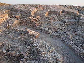 Since 2009, the project has undertaken a renewed program of architectural conservation on the Terrace Building Complex on the Citadel Mound, the large industrial quarter that burned in the Destruction Level ca. 800 BCE.[42] From 2014 to 2019, the architectural conservation team focused its efforts on restoring the South Bastion of the East Citadel Gate, affected by an earthquake in 1999. This project consolidated cracked stones, reinstalled them in the wall faces with stainless-steel supports, and addressed the drainage of the South Bastion through the repair of damaged masonry and the installation of a new capping support system.
