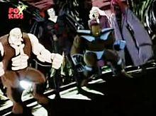 Meanwhile Slab, Ruckus and Gorgeous George established a drug lab, harvesting and selling mutant growth hormone, until Psylocke attacked their lab, defeated the three in combat and shut down their operation.[8] The Nasty Boys were later hunted down and killed by the Upstarts, in order to lure out Cyclops and his ragtag team of X-Men to Washington Heights. After a brief moment of words, the two groups engaged each other in battle with the X-Men gaining the upperhand.[9]