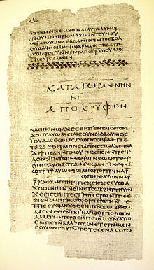 The manuscript of the Coptic text (CG II), found in 1945 at Nag Hammadi, Egypt, is dated at around 340 AD. It was first published in a photographic edition in 1956.[18] This was followed three years later (1959) by the first English-language translation, with Coptic transcription.[19] In 1977, James M. Robinson edited the first complete collection of English translations of the Nag Hammadi texts.[20] The Gospel of Thomas has been translated and annotated worldwide in many languages.