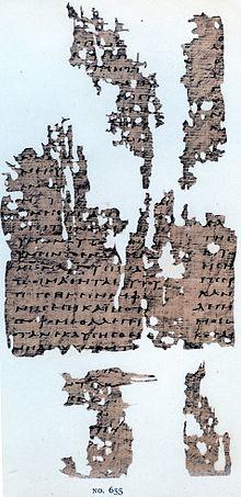 - P. Oxy. 655 : fragments of logia 36 through 39. 8 fragments designated a through h, whereof f and h have since been lost.[25]
