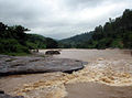 The Gosthani's waters are diverted for agricultural and industrial purposes and the river is the chief source of drinking water to the cities of Vizianagaram and Visakhapatnam. Several infiltration wells have been sunk on the Gosthani's riverbed to extract water especially during the summer months.[10] The Thatipudi Reservoir Project with a capacity of 3 TMC was built on the Gosthani during 1963-68 and is located in the Gantyada Mandal of the Vizianagaram district. It irrigates 15,378 acres (62.23 km2) of land in Vizianagaram district and provides drinking water to Visakhapatnam.[11] The Chaparai Falls, situated in a verdant valley, is on the Gosthani river.[12] The Visakhapatnam to Srikakulam leg of the Golden Quadrilateral Highway crosses the Gosthani at Tagarapuvalasa where a new bridge was inaugurated in 2003.[13]