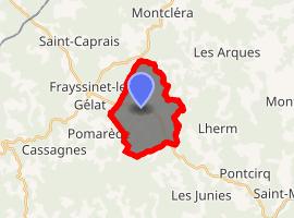 It makes up for one point in a quiet triangle of villages in the Lot, the others being Frayssinet-le-Gelat and the smaller Pomarede, both 3 km (1.9 mi) away.