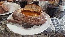 Goulash (Hungarian: gulyás) is a soup of meat and vegetables seasoned with paprika[1] and other spices.[2] Originating in Hungary, goulash is a common meal predominantly eaten in Central Europe but also in other parts of Europe. It is one of the national dishes of Hungary and a symbol of the country.[3][4][5]