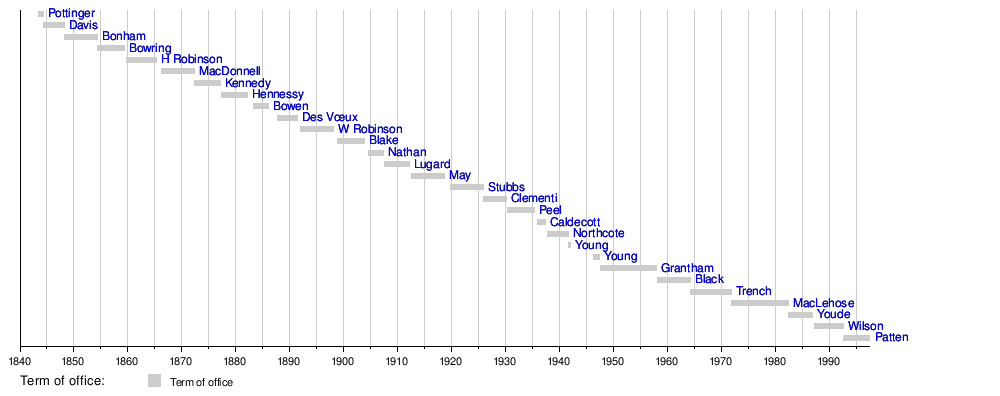 | 27 | Sir David Wilson 衛奕信 (1935–present) | 9 April 1987 | 3 July 1992 | 5 years, 91 days | Clackmannanshire, Scotland | Diplomat | ||