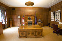 Mahonia Hall in Salem is the official governor's mansion.[8] The house was built in 1924 for hops grower Thomas A. Livesley. It was named Mahonia Hall after citizens raised funds in 1988 to purchase it as Oregon's first official governors' mansion.[9]