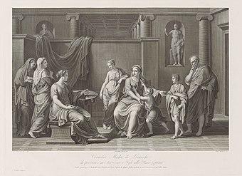 The brothers were born to a plebeian branch of the old and noble Sempronia family. Their father was the elderly Tiberius Sempronius Gracchus who was tribune of the plebs, praetor, consul, and censor. Their mother was Cornelia, daughter of Scipio Africanus, himself considered a hero by the Roman people for his part in the war against Carthage. Their parents had 12 children, but only one daughter—who later married Scipio Aemilianus—and two sons, Tiberius and Gaius, survived childhood.[1]