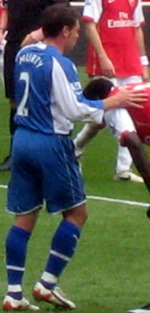 Murty joined Reading on a four-year contract on 6 July 1998 for a £700,000 fee, which at the time was the highest fee paid by Reading and the highest fee received by York.[7] His first few seasons were hampered by injury. However, once clear of injury, he quickly became an integral part of the team, and when Phil Parkinson left the club to become manager of Colchester United, Murty was appointed club captain. On 30 April 2006, Murty scored only his second goal, from a penalty, in 280 league and cup appearances when Reading played Queens Park Rangers on the final day of the 2005–06 season.[8] It ensured that Reading reached 106 points, a record for the second tier of English football.[8] His only previous goal for Reading came against Bristol City in March 2001.[9]