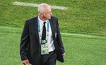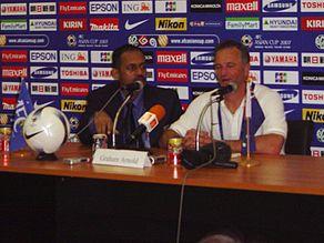 Graham James Arnold (born 3 August 1963) is an Australian association football manager and former player. Arnold was appointed to work as an assistant coach of the Australian national football team in 2000. After head coach Frank Farina was sacked in 2005, Arnold worked with Guus Hiddink for the 2006 FIFA World Cup campaign, in which they made the second round of the finals. After Hiddink left, he became interim coach of the Socceroos. Arnold went on to Qualify the U23s for the 2008 Beijing Olympics. Arnold then went on to assist Pim Verbeek for qualification of the 2010 World Cup in South Africa.[1] Arnold went on take the manager role at A-League club the Central Coast Mariners between 2010 and 2013, where he guided the club to two premierships and a championship. He is a member of the Football Federation Australia Football Hall of Fame. Arnold went on to win two premierships, one championship and an FFA Cup with Sydney FC. In August 2018, Arnold was appointed head coach of the Socceroos.