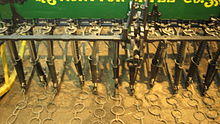 Before the operation of the seed drill, the ground must be plowed and harrowed. The plow digs up the earth and the harrow smooths the soil and breaks up any clumps. The drill must then be set for the size of the seed used. Afterwards, the grain is put in the hopper on top which then follows along behind the drill while it spaces and plants the seed. This system is still used today but has been modified and updated so that a farmer can plant many rows of seed at the same time.