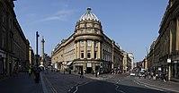 Grey Street was built by Grainger in the 1830s with the aid of several architects, including John Dobson. The whole of the western side of the street was designed by two architects from Grainger's office, John Wardle and George Walker.[2] Dean Street, which continues south from Grey Street was constructed earlier, in 1749. Grey Street contains the Theatre Royal designed by John and Benjamin Green, the southern entrance to Monument Metro station and the Central Arcade. It is renowned for its Georgian architecture, and was in 2010 voted 'Best street in the UK' by BBC Radio 4 listeners.[3][4]