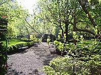 The first formal meeting of the park's trustees took place in 1844 at 17 Union Square (West), the mansion of James W. Gerard, which is no longer extant, having been demolished in 1938.[31] By that time, landscaping had already begun with the hiring of James Virtue in 1838, who planted privet inside the fence as a border; by 1839 pathways had been laid out and trees and shrubs planted.[32] Major planting also took place in 1844[8] – the same year the park's gates were first locked[31] – followed by additional landscaping by Brinley & Holbrook in 1916. These plantings had the effect of softening the parks' prim formal design.[32]
