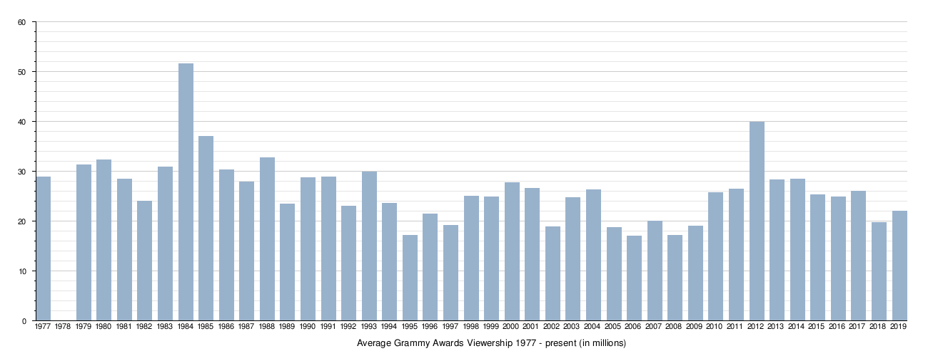 - ^ Welch, Alex (February 12, 2019). "Grammy Awards adjusts up, 'The Simpsons' adjusts down: Sunday final ratings". Archived from the original on February 12, 2019. Retrieved July 5, 2019.