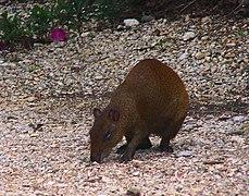 Fauna seen in various locations around the island include blue iguanas (Cyclura lewisi), Grand Cayman amazon parrots (Amazona leucocephala caymanensis), Central American agouti (Dasyprocta punctata), and Gecarcinus ruricola, a species of land crab. The Cayman Islands Turtle Farm located in the West Bay district raises green sea turtles for their meat and to release into the wild.