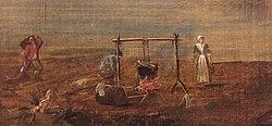 For those who did not leave their farms, the number of raids intensified. During the summer of 1758, there were four raids on the Lunenburg Peninsula. On July 13, 1758, one person on the LaHave River at Dayspring was killed and another seriously wounded by a member of the Labrador family.[43] The next raid happened at Mahone Bay, Nova Scotia on August 24, 1758, when eight Miꞌkmaq attacked the family homes of Lay and Brant. They killed three people in the raid, but were unsuccessful in taking their scalps, a common practice for payment from the French.[44] Two days later, two soldiers were killed in a raid on the blockhouse at LaHave, Nova Scotia.[44] On September 11, a child was killed in a raid on the Northwest Range.[45] Another raid happened on March 27, 1759, in which three members of the Oxner family were killed.[40] The last raid happened on April 20, 1759 at Lunenburg, when the Miꞌkmaq killed four settlers who were members of the Trippeau and Crighton families.[46]