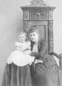 Grand Duchess Maria Pavlovna was born 18 April [O.S. 6 April] 1890 in Saint Petersburg. She was the first child and only daughter of Grand Duke Paul Alexandrovich of Russia and his first wife, Grand Duchess Alexandra Georgievna of Russia, born Princess Alexandra of Greece and Denmark.[1] The baby was named after her late paternal grandmother, the Empress Maria Alexandrovna, and her paternal aunt and godmother, the Empress Maria Feodorovna.[2] Maria was not yet two years old when her mother died from complications after giving birth to Maria's younger brother, Grand Duke Dmitri Pavlovich of Russia in 1891.[3] Grand Duke Paul was so distraught by the unexpected death of his young wife that he neglected his two small children, who were left in the care of his elder brother, Grand Duke Sergei Alexandrovich, who had no children of his own. Once he recovered emotionally, Grand Duke Paul took the two children away with him. A commander of the Imperial horse Guards, Grand Duke Paul loved his children, but as was customary at the time, he refrained from showing them spontaneous affection.[4] Maria and her brother were raised by governesses and tutors, but they adored their father who visited them twice a day.[4] The children spent Christmases and later some summer holidays with Grand Duke Sergei and his wife Grand Duchess Elisabeth Feodorovna.[5] The couple set aside a playroom and bedrooms for the youngsters at their country home, Ilinskoe.[6]