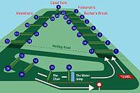 Before 1888 the first two fences were located approximately halfway between the first to second and second to third jumps. The second became known as The Fan, after a mare who refused the obstacle three years in succession. The name fell out of favour with the relocation of the fences.