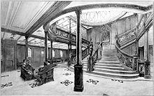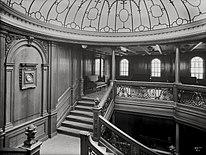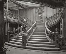 The set of large ornate staircases in the first-class section of the RMS Titanic, sometimes collectively referred to as the Grand Staircase, is one of the most recognizable features of the British transatlantic ocean liner which sank on her maiden voyage in 1912 after a collision with an iceberg. Reflecting and reinforcing the staircase's iconic status is its frequent, and prominent, portrayal in media.