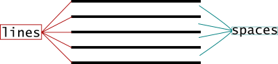 The lines and spaces are numbered from bottom to top; the bottom line is the first line and the top line is the fifth line.