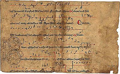 12th-century Beneventan manuscript showing diastematic neumes and a single-line staff