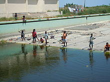 The Grande Hotel has deteriorated, however. With only 116 hotel rooms, it now provides shelter for a fluctuating population of around 1,077 inhabitants (Ivo 2008), with large families inhabiting a single room. They do not pay any rent and cannot claim a right of ownership. There is little formal maintenance of the collective space, resulting in accumulating garbage, leaking rain water, open elevator shafts and inaccessible stairs. The Olympic swimming pool, now polluted, is used for bathing by inhabitants who cannot afford to buy water at the privately owned water pump opposite the Grande Hotel. According to the local Red Cross, there is a high risk of cholera, diarrhoea, HIV/AIDS, malaria and scabies in the Grande Hotel. The water, sewer and electricity infrastructures have been removed and sold in order to obtain money for food and water. The parquet floor is used as fuel for cooking.