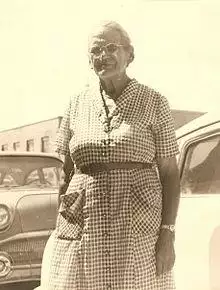 At the age of 19 she married 27-year-old P. C. Gatewood, a college educated primary school teacher, and later tobacco farmer, with whom she had 11 children.[1] Almost immediately he sent her to work burning tobacco beds, building fences, and mixing cement in addition to her expected housework duties.[5] Within months of the marriage, he started to beat her, a vicious pattern that continued for the entirety of their marriage.[5] She recalled being beaten nearly to death on several occasions. She survived broken ribs, broken teeth, and other injuries during the abusive marriage.[4] When her husband became violent, she would, on occasion, run from the house into the woods where she found peace and solitude.[4] She eventually successfully divorced P. C. Gatewood in 1940. This was at a time when divorce was difficult, and after her husband had repeatedly threatened to have her committed to an insane asylum as a means of maintaining control over her.[4] She had 24 grandchildren, 30 great-grandchildren, and one great-great-grandchild living at the time of her death, from a heart attack,[6] at 85.[1]