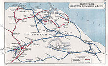 In 1909, Leith Corporation ran trams from Leith to Granton. They were joined in 1923 by trams from the Edinburgh Corporation, resulting at one point, having seven tram routes to the area: four from Leith via Lower Granton Road (services 2, 14, 16 and 17); three via Granton Road (services 8, 9 and 13). Trams to Granton were withdrawn in stages, from 1952 to 1956, and replaced by buses.