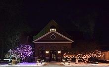 On a hill overlooking the village is the campus of Denison University, founded in 1831 as the Granville Theological and Literary Seminary, originally a northern Baptist institution. Today, Denison is a private, residential, non-sectarian liberal arts college with a student body of about 2,100 and a faculty of 200. The school is accredited by the Higher Learning Commission and is certified by the Ohio Board of Regents to grant Bachelor of Arts, Bachelor of Science and Bachelor of Fine Arts degrees. 74% of the student body comes from out of state, including representatives from forty countries.[14] The Homestead at Denison University is a residential student intentional community focusing on environmental sustainability. Swasey Chapel is the iconic campus structure. Completed in 1924, the chapel is named in honor of Ambrose Swasey, a benefactor to the college and prominent Cleveland inventor and businessman.[15]