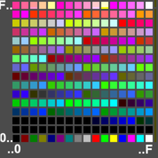 To render a full-color image as a GIF, the original image must be broken down into smaller regions having no more than 255 or 256 different colors. Each of these regions is then stored as a separate image block with its own local palette and when the image blocks are displayed together (either by tiling or by layering partially transparent image blocks) the complete, full-color image appears. For example, breaking an image into tiles of 16 by 16 pixels (256 pixels in total) ensures that no tile has more than the local palette limit of 256 colors, although larger tiles may be used and similar colors merged resulting in some loss of color information.[30]