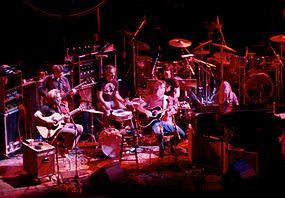 The Grateful Dead in 1970, from a promotional photo shoot. Left to right: Bill Kreutzmann, Ron "Pigpen" McKernan, Jerry Garcia, Bob Weir, Mickey Hart, Phil Lesh. | |