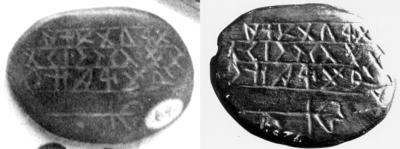 - ^ a b c d e Reid, M.C. (1879). "Inscribed Stone of Grave Creek Mound". The American Antiquarian 1(3). pp. 139-149.
