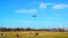 Gravelly Point is a popular spot for plane spotters[4][5] and others to watch planes take off and land from Reagan National Airport. Airplanes pass between 100 and 200 feet overhead when landing on Runway 19 or taking off from Runway 1.